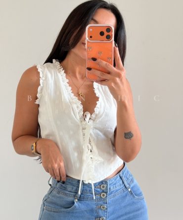 Blusa Corta Bordados y crochet