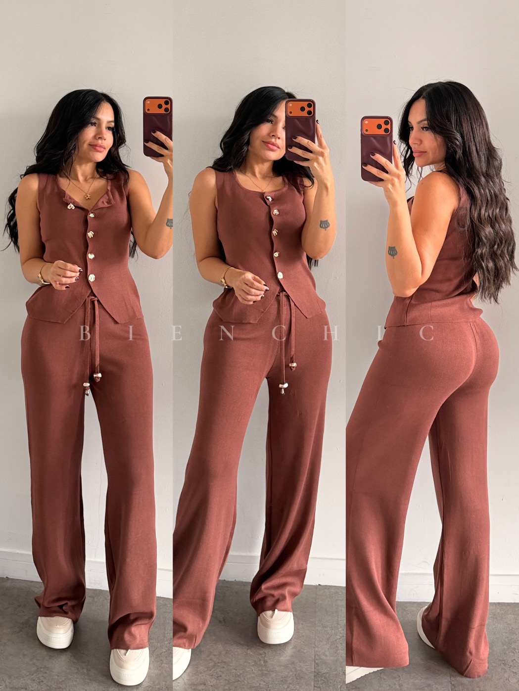 - Color: Vinotinto, Marrón, Blanco y Negro